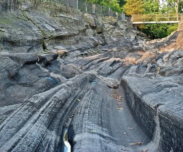 Today a trough of 400 feet long and about 35 feet wide stands to show its inescapable evidence of existence. Its historical importance lies in the Devonian Lime stone which contains these grooves bearing marine fossils that can be dated back to 350 to 400 million years.
