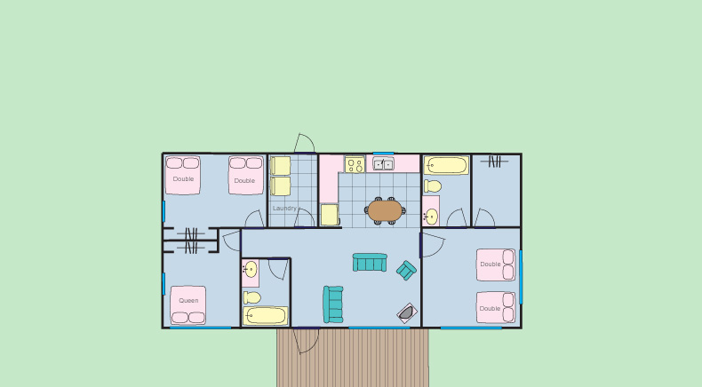 Delux Villa 11 sits high on a hill with great views of Sandusky Bay. Enjoy the comforts of home in this villa with a washer and dryer and a dishwasher. Delux Villa sleeps ten people and has three bedrooms with one queen, four double bedsand two full bathrooms.