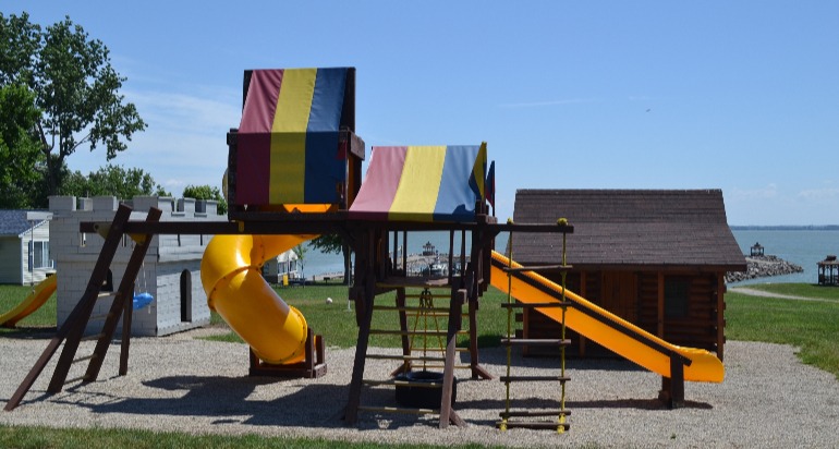 South Beach has a large playground kids love. We have swings, jungle gym, slides and a balance beam along with a log cabin and castle playhouse. Families love to climb our rock mountain for their large family reunion photos.